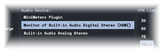 - Under the Audio Device panel and select any of the audio devices beginning with "Monitor of..."
