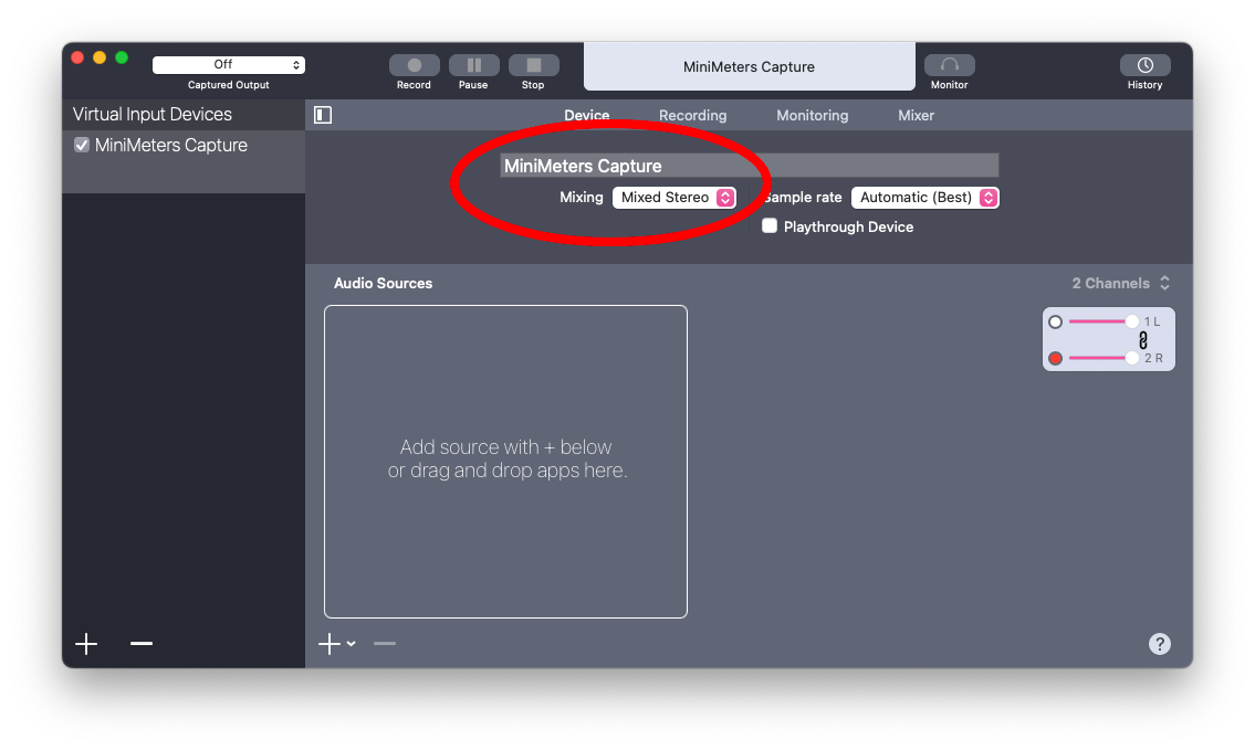 - Give your new Virtual Input Device a descriptive name. For instance "MiniMeters Capture."