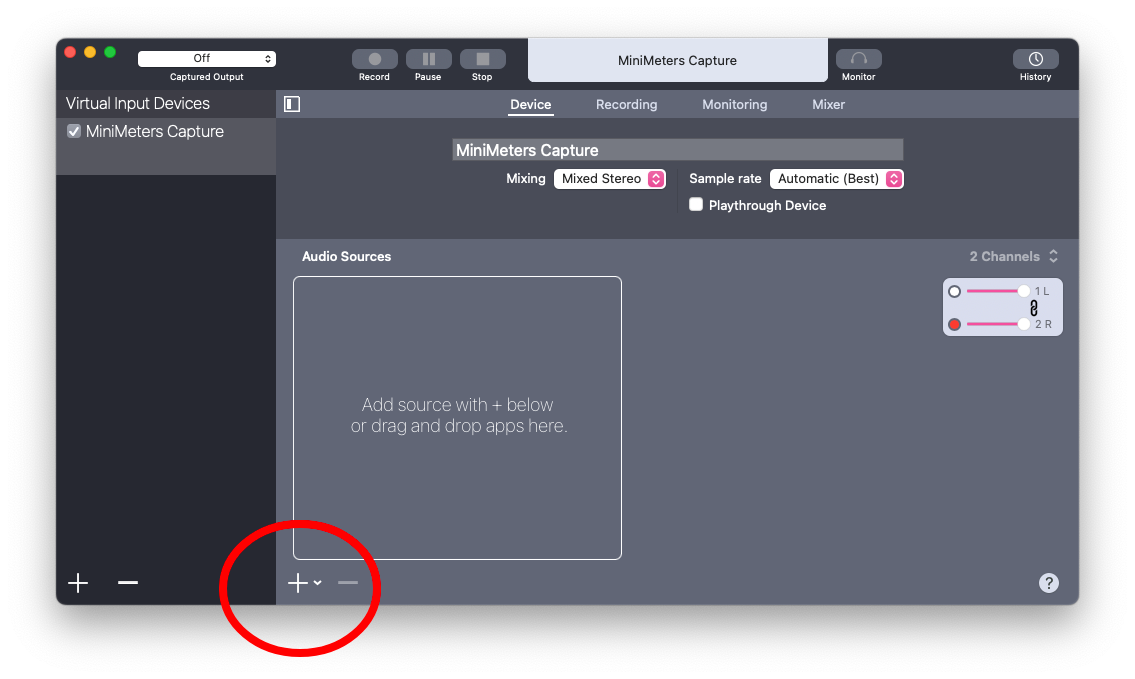 - Once installed, open Sound Siphon and click the plus icon from the bottom left to add a new Virtual Input Device.