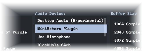 - From within MiniMeters select "MiniMeters Plugin" from the Audio Device list.